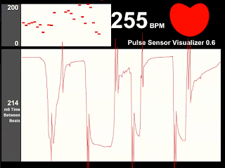 Julia and I have been practicing working with the PulseSensor (especially before we proposed an entire project on this sensor) and we were pleasantly surprised at the ease of use we had with it considering the horror stories we've heard about it.